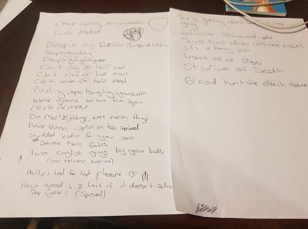 I ran 10 sessions of Orcish heavy metalers. I’ve told my wife to please remind me not to attempt anything so absurd again. It’s been a blast. Glorious, hilarious, absurd and more than once I’ve near wept with laughter. I’m also sore (Mostly from the laughter, but also some of the puns), over tired and can’t wait to do it again. The experience of the whole thing is lovely, from orgs checking am I ok, to wildly enthusiastic players – there’s a wonderful atmosphere there. How wonderful were my players you ask? One group wrote a setlist. Another put in character autographs on their sheets and I baiscally had to award the one who was writing songs during the game. They were excellent to each other, to say the least.